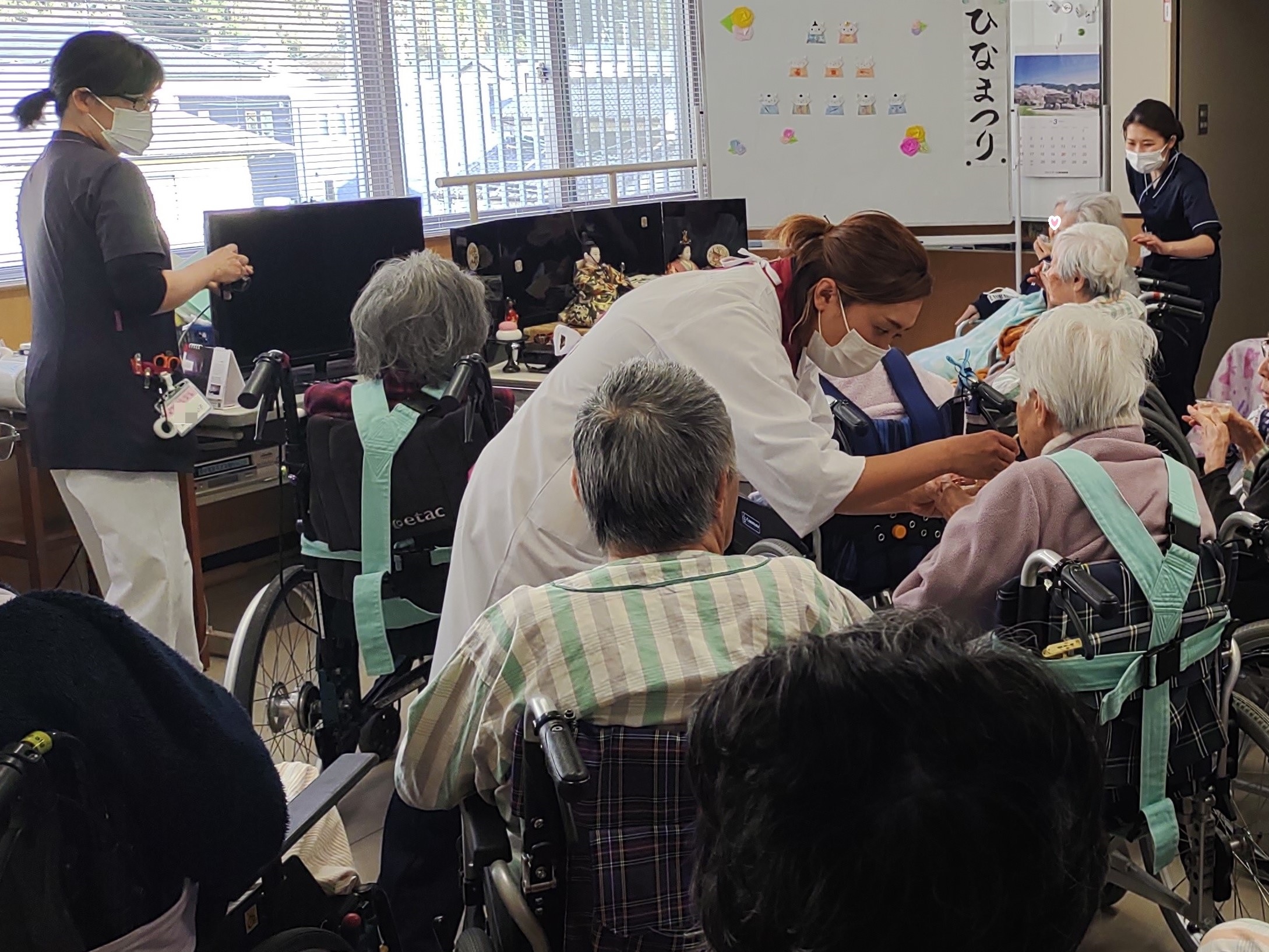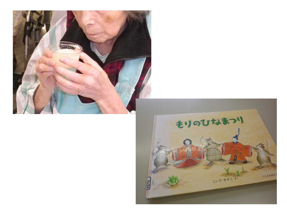 ひな祭り瀬名病院通信 2025.03.17今年のイベントでは、入所者様と職員が「甘酒」や「雛あられ」をいただきました。 入所者様の容体に応じて、とろみもつけて、甘くておいしく出来上がりました。 職員による「うれしいひなまつり」の熱~い独唱のあと、拍手でお開きです。 前イベントの「もりのひなまつり」の読み聞かせの様子もご紹介しますね。 静岡瀬名病院
